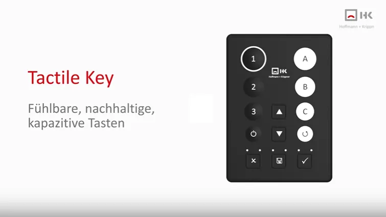 Tactile Key ist ein nachhaltiges Bedienkonzept, das unnötigen Müll vermeidet und gleichzeitig neue Features für kapazitive Tasten mitbringt. Durch den besonderen Aufbau werden kapazitive Tasten fühlbar. Die Tastenformen können erhaben oder vertieft sein und individuell beleuchtet werden.